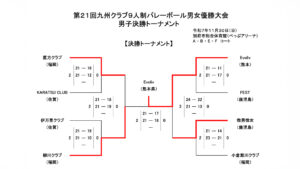 「第21回九州クラブ男女9人生バレーボール選手権大会」予選結果及び決勝トーナメント戦組合せ