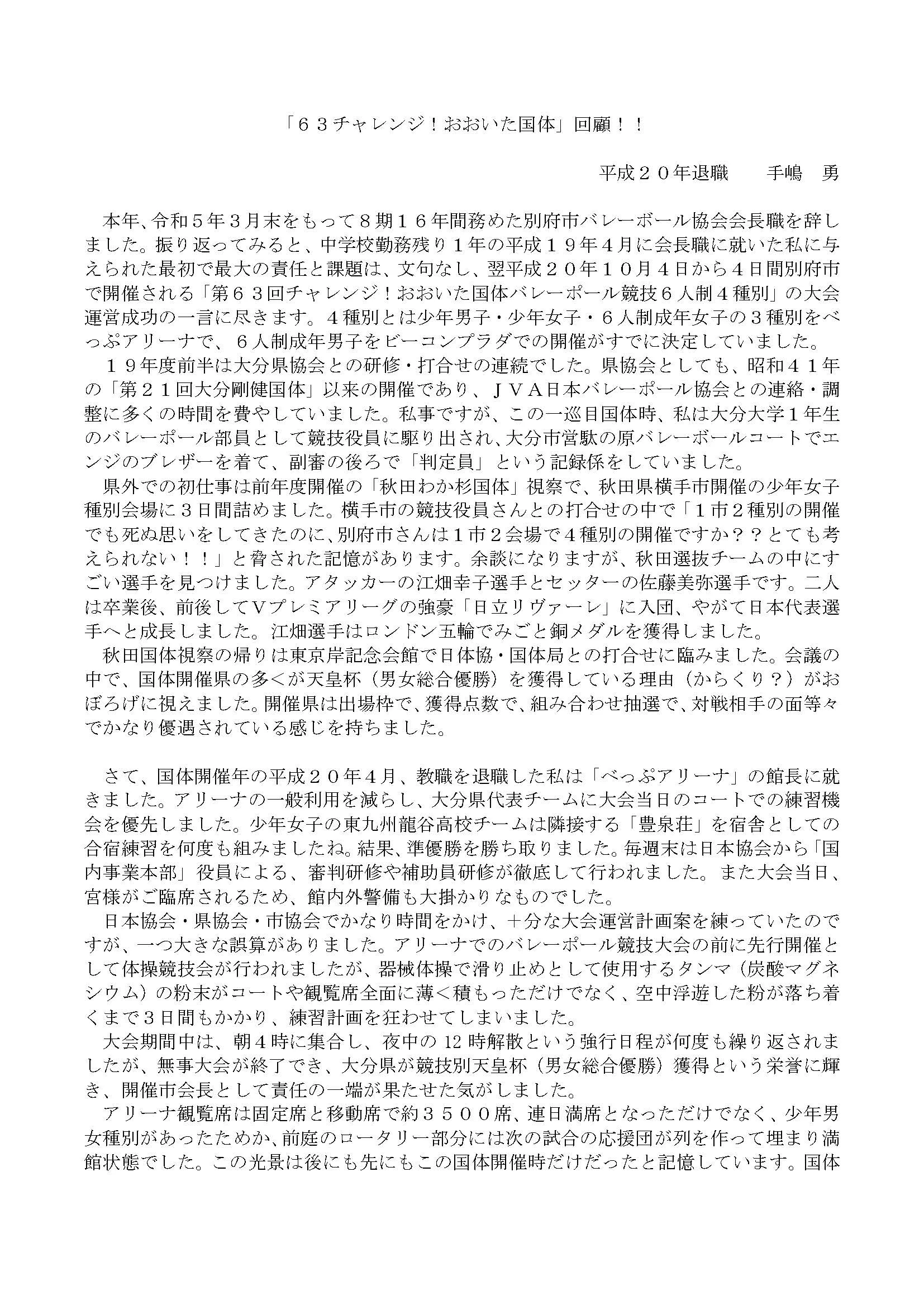 手嶋前会長大分国体回顧録