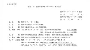 「第21回別府市小学生バレーボール新人大会」大会要項の公開